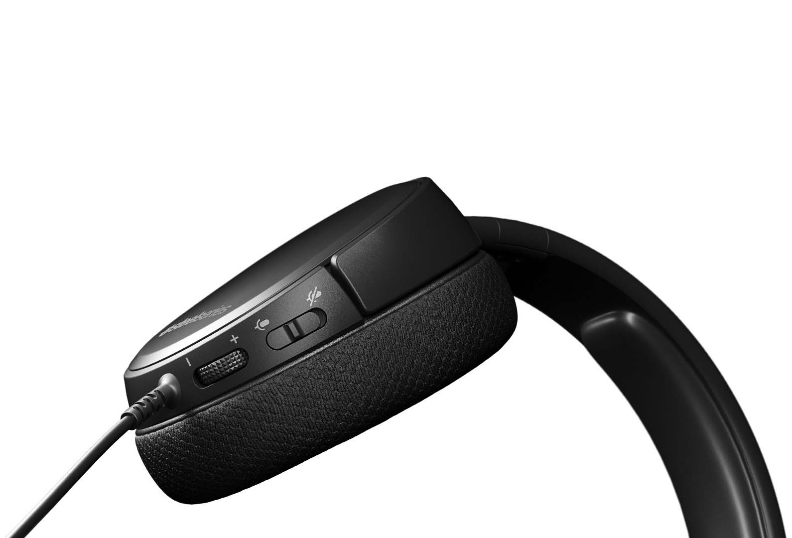 Điều khiển âm thanh dễ dàng Dễ dàng tinh chỉnh và chuyển đổi cài đặt bằng nút tắt tiếng micrô và thanh điều chỉnh âm lượng nằm bên dưới chụp tai nghe SteelSeries Arctis 1. |