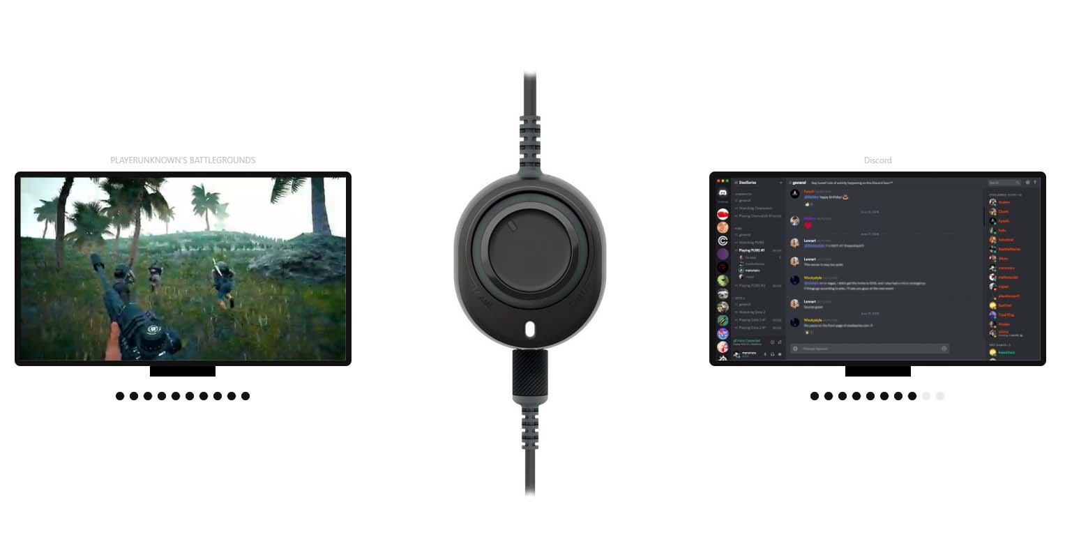 USB ChatMix Dial Tai nghe SteelSeries Arctis 5 RGB mang đến sự cân bằng hoàn hảo giữa âm thanh trò chơi và âm thanh trò chuyện mà không cần rời khỏi trò chơi thông qua núm xoay USB ChatMix Dial |