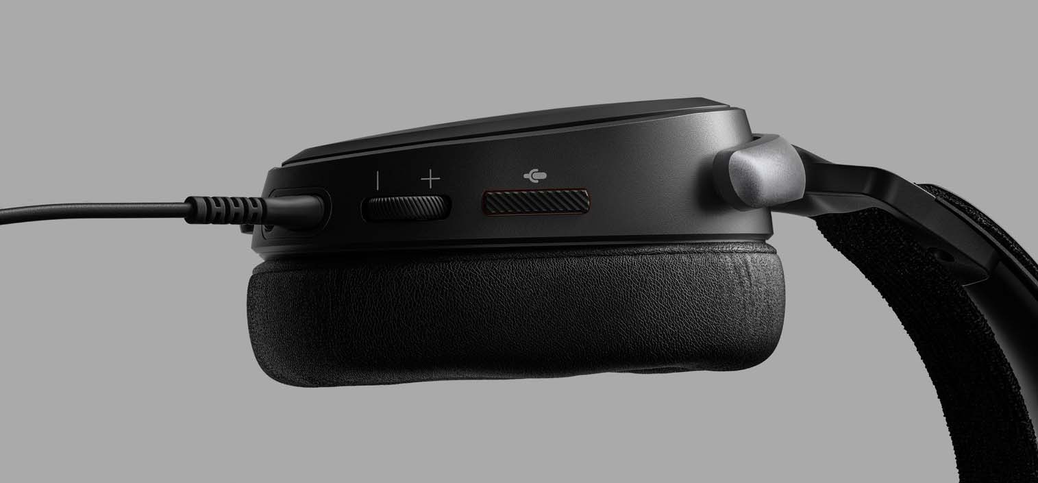 Điều khiển âm thanh dễ dàng Dễ dàng tinh chỉnh và chuyển đổi cài đặt bằng nút tắt tiếng micrô và thanh điều chỉnh âm lượng nằm bên dưới chụp tai nghe SteelSeries Arctis Prime. |