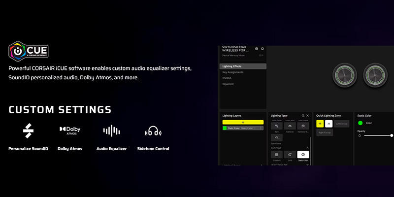 Khai phá toàn bộ tiềm năng của thiết bị với sự hỗ trợ từ phần mềm iCUE Software độc quyền của Corsair. Giao diện trực quan cho phép bạn tinh chỉnh mọi thông số âm thanh thông qua bộ cân bằng (EQ) chuyên sâu, thiết lập các cấu hình âm thanh riêng biệt cho từng tựa game hoặc ứng dụng. Ngoài ra, iCUE còn cho phép đồng bộ hóa hệ thống đèn RGB (nếu có trên các thiết bị Corsair khác) để tạo nên một góc máy đồng bộ và rực rỡ. Phần mềm này biến chiếc tai nghe thành một thiết bị thông minh, hiểu và đáp ứng đúng gu thưởng thức âm thanh của riêng bạn.