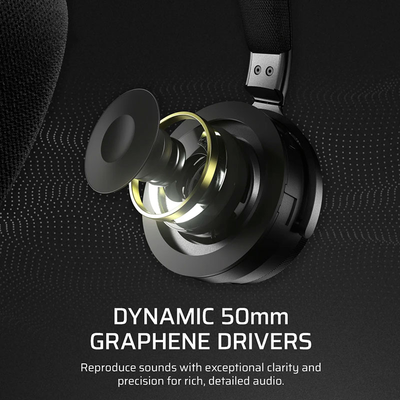 Được chế tác từ những vật liệu cao cấp với hai phiên bản màu sắc sang trọng là Carbon và Silver, tai nghe toát lên vẻ đẹp hiện đại và tinh tế. Mặc dù có trọng lượng khoảng 0.412kg, thiết kế công thái học cùng đệm tai êm ái giúp phân bổ lực đều, mang lại cảm giác thoải mái khi đeo trong thời gian dài. Điểm cộng lớn nhất chính là thời lượng pin ấn tượng lên đến 30 giờ sử dụng liên tục, cho phép bạn chiến game thâu đêm suốt sáng hoặc làm việc cả ngày dài mà không cần lo lắng về việc sạc pin giữa chừng. Đây là người bạn đồng hành bền bỉ, sẵn sàng phục vụ mọi nhu cầu giải trí và công việc của bạn.