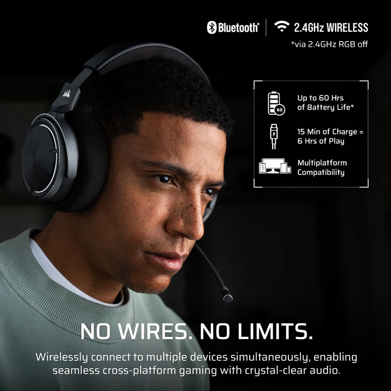 Sự tự do là yếu tố then chốt của sản phẩm này nhờ vào công nghệ kết nối không dây siêu tốc thông qua USB Wireless Receiver đi kèm. Với phạm vi kết nối lên tới 50ft (khoảng 15 mét), bạn có thể thoải mái di chuyển trong phòng mà không lo bị gián đoạn tín hiệu hay vướng víu dây cáp. Tai nghe hỗ trợ đa nền tảng, hoạt động mượt mà trên PC, Mac, PlayStation 4 và PlayStation 5, mang lại sự linh hoạt tối đa cho người dùng sở hữu nhiều hệ máy. Công nghệ không dây tiên tiến giúp duy trì độ trễ cực thấp, đảm bảo hình ảnh và âm thanh luôn đồng bộ hoàn hảo, yếu tố sống còn trong các tựa game cạnh tranh tốc độ cao.