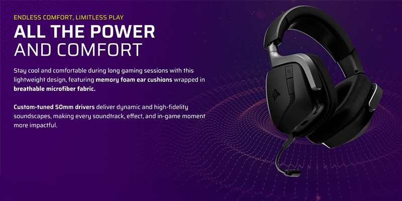 Chất lượng âm thanh luôn là linh hồn của mọi chiếc tai nghe gaming, và phiên bản Void V2 Max này không làm người dùng thất vọng với trang bị củ loa (drivers) Neodymium 50mm cao cấp. Các kỹ sư âm thanh của Corsair đã tinh chỉnh tùy biến (custom-tuned) các driver này để tạo ra một dải âm thanh có độ trung thực cao (High-Fidelity), với dải tần đáp ứng rộng từ 20Hz đến 20kHz. Kết quả là một không gian âm nhạc sống động, nơi những nốt trầm (bass) xuống sâu đầy uy lực, trong khi các nốt cao (treble) vẫn giữ được sự trong trẻo và chi tiết. Dù là tiếng nổ rung chuyển trong các tựa game hành động bom tấn hay những bản nhạc nền du dương của game nhập vai, mọi âm thanh đều được tái tạo một cách chính xác và đầy cảm xúc, nâng tầm trải nghiệm giải trí tại gia lên một đẳng cấp mới.