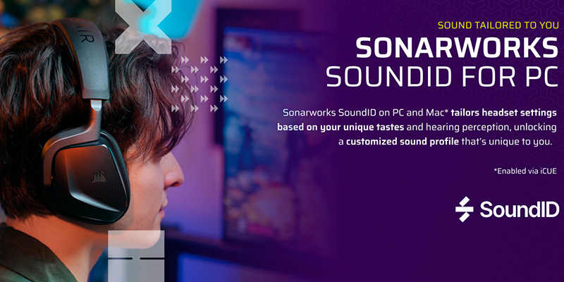 Không chỉ dừng lại ở phần cứng mạnh mẽ, Tai Nghe không dây Corsair Void V2 Max Wireless Black Carbon còn được tích hợp những công nghệ xử lý âm thanh tiên tiến nhất hiện nay để tối ưu hóa trải nghiệm người dùng. Nổi bật là sự hỗ trợ Dolby Atmos® Spatial Audio, công nghệ âm thanh vòm 3D giúp người chơi xác định chính xác vị trí của từng tiếng bước chân hay hướng đạn bay với độ chính xác kinh ngạc, mang lại lợi thế cạnh tranh lớn trong game FPS. Bên cạnh đó, công nghệ Sonarworks SoundID mang đến khả năng cá nhân hóa thính giác độc đáo. Thay vì phải loay hoay với các thanh trượt Equalizer phức tạp, SoundID sẽ phân tích sở thích nghe của riêng bạn thông qua một bài kiểm tra nhanh và tự động tạo ra hồ sơ âm thanh tối ưu nhất. Sự kết hợp này đảm bảo rằng mỗi người dùng đều có được một trải nghiệm âm thanh "đo ni đóng giày" cho riêng mình.