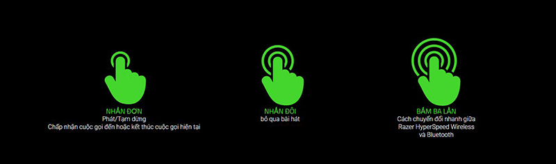 Điều khiển âm thanh trên tai nghe Tận hưởng khả năng điều khiển dễ dàng đối với âm nhạc, video và cuộc gọi bằng các nút nằm bên dưới tai nghe Razer BlackShark V2 Pro. |