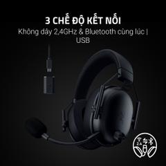 Tai nghe không dây Razer Blackshark V3 hỗ trợ kết nối 2.4GHz Wireless, Bluetooth và USB Wired, mang lại sự linh hoạt chưa từng có. Tính năng SmartSwitch cho phép chuyển đổi mượt giữa các thiết bị, trong khi nút Game / Chat Balance giúp tinh chỉnh âm lượng game và hội thoại dễ dàng. Đây là lựa chọn lý tưởng cho những ai muốn một thiết bị vừa phục vụ chơi game trên PC, vừa dùng cho PS5™, smartphone, tablet hay cả laptop văn phòng. Razer đã thành công khi mang đến một thiết bị audio không chỉ giới hạn cho game thủ, mà còn đáp ứng cả nhu cầu học tập, giải trí và công việc hằng ngày.