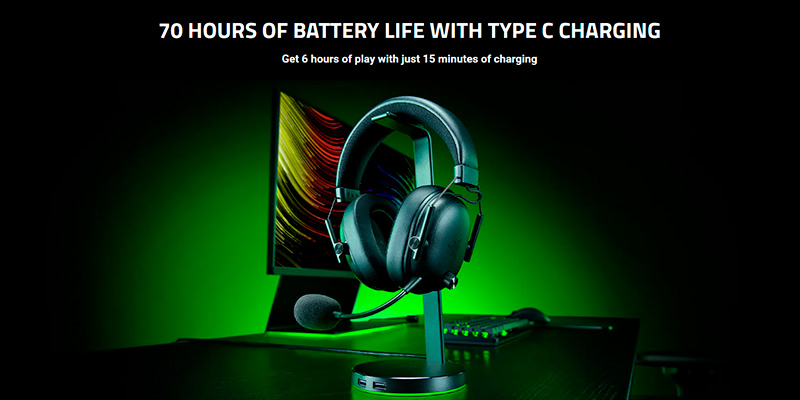 Một lợi thế vượt trội của Tai nghe không dây Razer Blackshark V3 chính là thời lượng pin lên đến 70 giờ khi sử dụng kết nối không dây 2.4GHz. Điều này giúp bạn tận hưởng các trận đấu dài, làm việc cả tuần mà không cần lo sạc liên tục. Khả năng sạc nhanh và kết nối USB Wired cũng là phương án dự phòng hiệu quả khi bạn cần tái lập kết nối trong tích tắc. Không còn những gián đoạn không đáng có – chỉ còn lại trải nghiệm âm thanh liền mạch, bền bỉ. Với người dùng bận rộn hoặc thường xuyên di chuyển, thời lượng pin dài chính là yếu tố không thể thiếu để đảm bảo hiệu suất làm việc và giải trí không bị ngắt quãng.