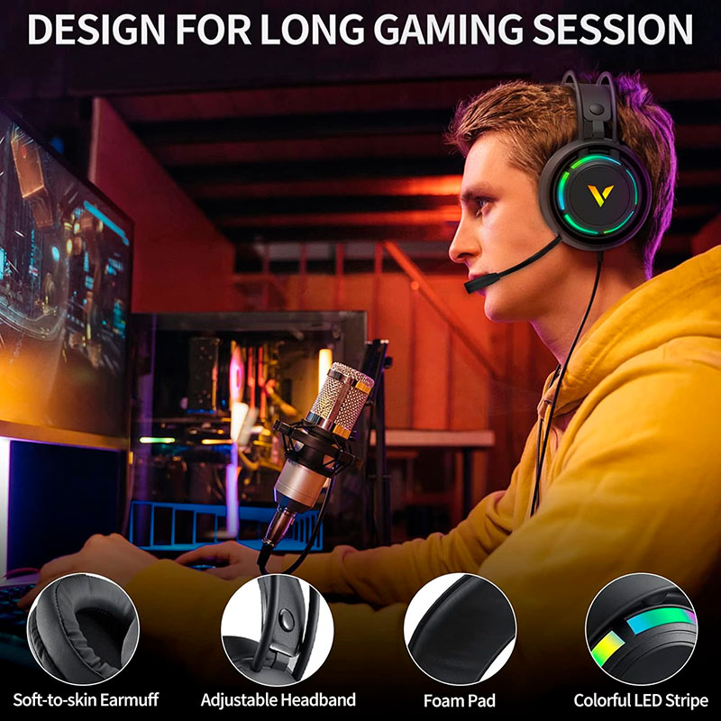 Rapoo VH360-BLK được chế tạo từ vật liệu siêu bền, kết hợp thiết kế nhẹ và hệ thống treo băng đô linh hoạt, giúp ôm sát đầu mà không gây áp lực. Độ hoàn thiện cao cùng tông màu đen sang trọng và LED RGB nổi bật giúp tai nghe trở thành điểm nhấn trong setup gaming. Đây là sự kết hợp hoàn hảo giữa tính thẩm mỹ và công năng.