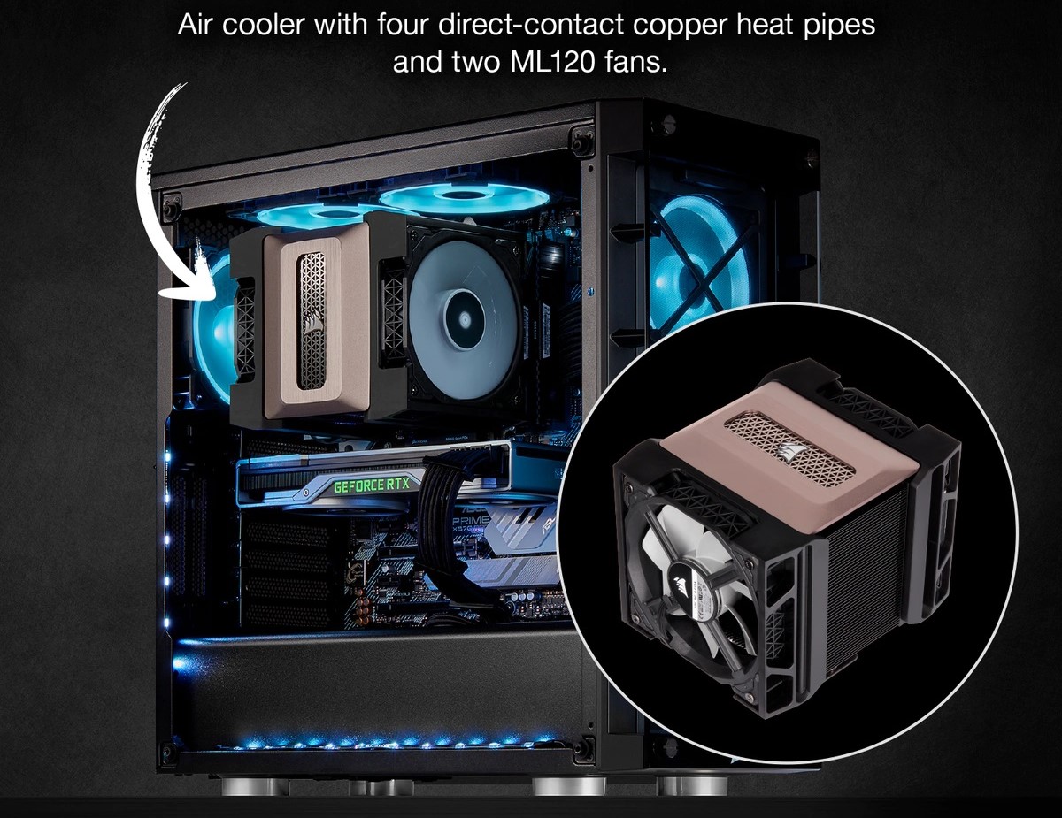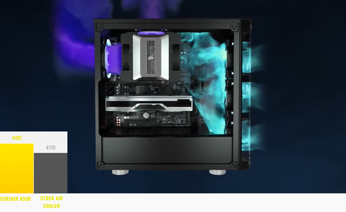 Tản nhiệt khí Corsair A500 Đầu bơm hiệu suất cao Giảm nhiệt độ của máy để tăng hiệu suất tối đa từ bộ xử lý. CORSAIR A500 tự hào có bốn ống dẫn nhiệt bằng đồng tiếp xúc trực tiếp để hút nhiệt ra khỏi CPU của bạn |