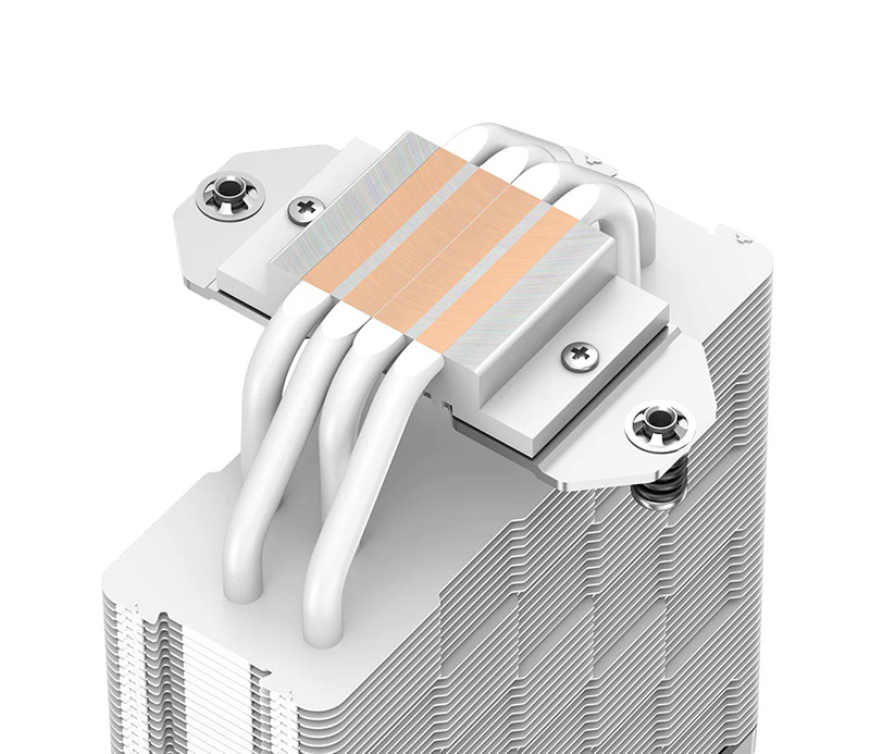 Tản nhiệt khí Deepcool AK400 WH Nâng cao hiệu suất làm mát Tản nhiệt khí Deepcool AK400 WH tối ưu hóa sự trao đổi nhiệt thông qua một đế đồng vững chắc với bề mặt tiếp xúc tối ưu chạy bốn ống dẫn nhiệt 6mm trong một tháp duy nhất với mật độ vây cao |
