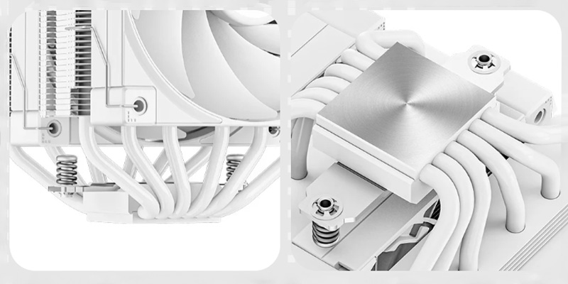 Tản nhiệt khí Deepcool AK620 DIGITAL WH tối ưu hóa sự trao đổi nhiệt thông qua một đế đồng vững chắc với bề mặt tiếp xúc tối ưu chạy bốn ống dẫn nhiệt 6mm trong một tháp duy nhất với mật độ vây cao.