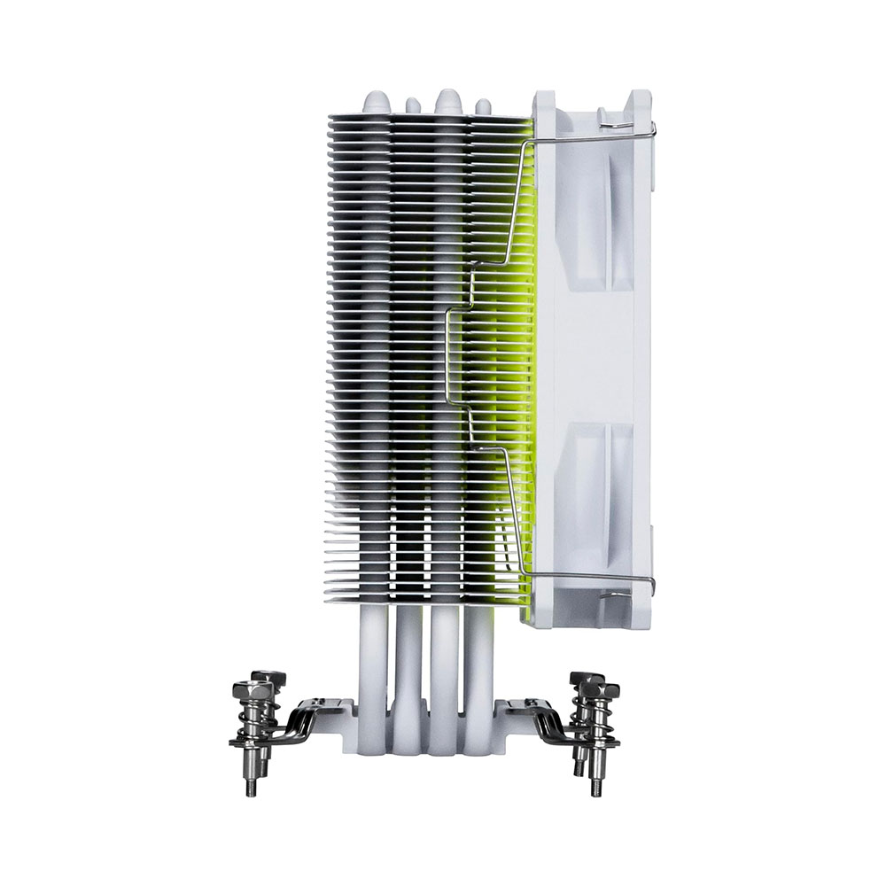 MAG CORE FROZR AA133 White ARGB sở hữu 50 lá tản nhôm được thiết kế dày đặc, tạo ra đường dẫn không khí tập trung và giảm cản trở luồng gió. Cấu trúc này giúp tăng áp suất không khí đi qua cụm tản, nhờ đó tản nhiệt nhanh hơn và hiệu quả hơn ngay cả trong các tác vụ nặng như chơi game hoặc render. Bộ tản còn được bôi sẵn keo tản nhiệt cao cấp, giúp người dùng dễ dàng lắp đặt mà không cần chuẩn bị thêm.