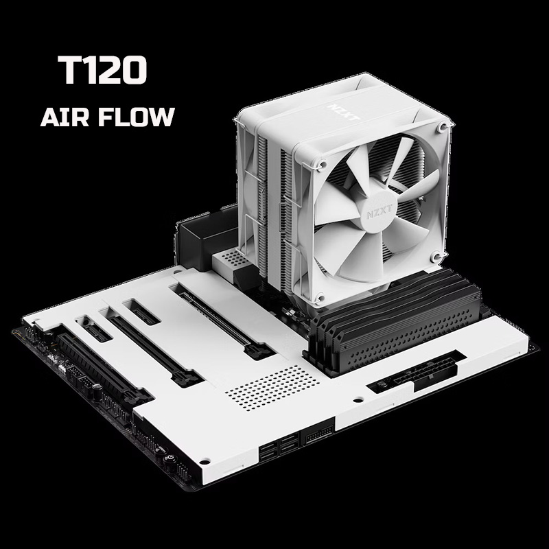 Tản nhiệt khí NZXT T120 Air Cooler Hiệu suất vượt bậc NZXT T120 là bộ tản nhiệt CPU hiệu suất với 4 ống đồng dẫn nhiệt chuyên dụng được thiết kế quạt kép hỗ trợ PWM. Các cánh tản nhiệt bằng nhôm hình tháp đôi và mặt đồng tiếp xúc được đánh bóng cao khiến nó trở thành một trong những bộ tản nhiệt tốt nhất và là giải pháp tuyệt vời cho bộ máy của bạn |