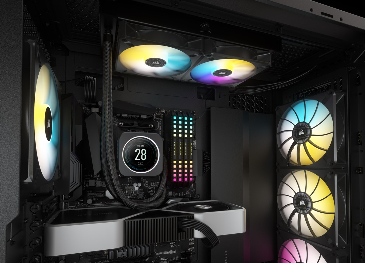 Fan thế hệ mới Được trang bị Fan CORSAIR ML RGB ELITE hoàn toàn mới với tám đèn LED RGB trên mỗi Fan và luồng không khí với công nghệ AirGuide cho hiệu suất làm mát CPU vượt trội. |