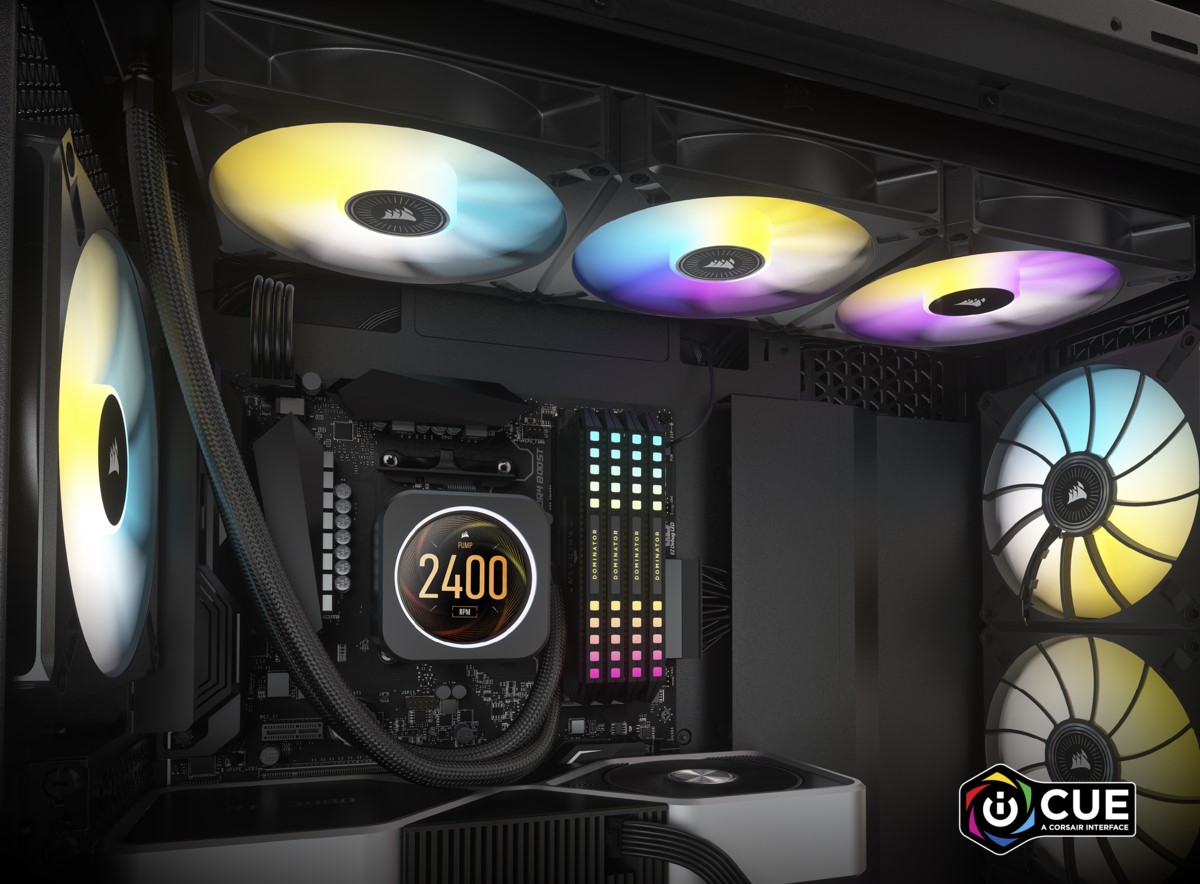 Fan thế hệ mới Được trang bị Fan CORSAIR ML RGB ELITE hoàn toàn mới với tám đèn LED RGB trên mỗi Fan và luồng không khí với công nghệ AirGuide cho hiệu suất làm mát CPU vượt trội. |