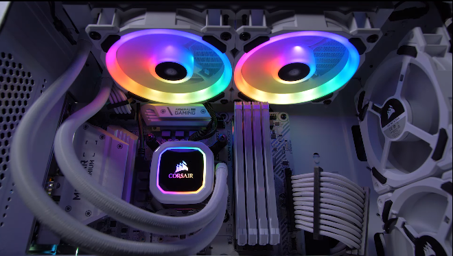 Màu trắng sang trọng Vỏ quạt cùng nắp máy bơm và bộ tản nhiệt màu trắng làm nổi bật phong cách hệ thống của bạn. |