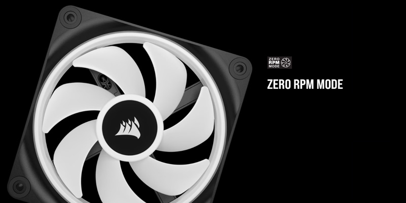 Cấu hình làm mát Zero RPM trong phần mềm CORSAIR iCUE cho phép quạt dừng hoàn toàn ở nhiệt độ thấp, loại bỏ tiếng ồn của quạt.