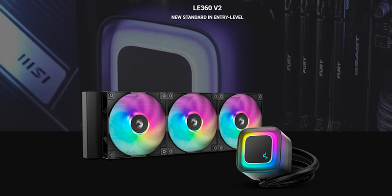 Tản nhiệt nước AIO Deepcool LE360 V2 A-RGB R-LE360-BKAMMC-G-2 trang bị radiator kích thước lớn lên đến 360mm, tối ưu khả năng làm mát CPU hiệu quả ngay cả khi hoạt động cường độ cao. Thiết kế radiator mật độ lá nhôm cao, giúp tăng diện tích tiếp xúc và nhanh chóng hạ nhiệt, giữ cho hệ thống luôn mát mẻ, ổn định khi làm việc, chơi game hay ép xung.