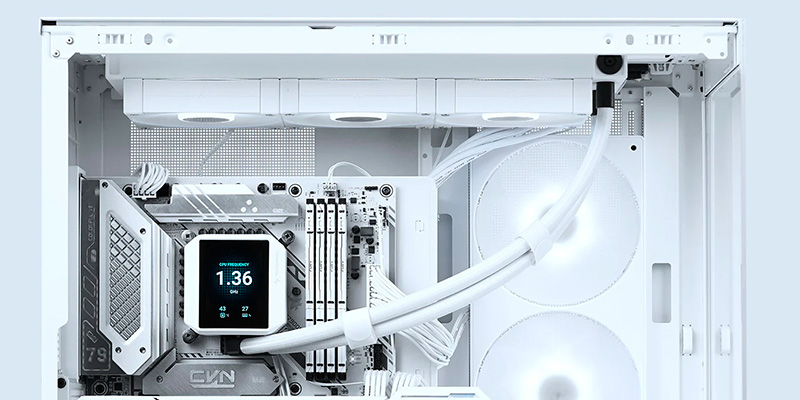 MYSTIQUE 360 WH ARGB tích hợp màn hình LCD 2.1 inch, cho phép hiển thị nhiệt độ CPU, logo tùy chỉnh hoặc các hiệu ứng động đầy ấn tượng. Người dùng có thể dễ dàng điều chỉnh thông qua phần mềm DeepCool để cá nhân hóa hệ thống làm mát theo phong cách riêng. Màn hình không chỉ tăng thêm tính thẩm mỹ mà còn mang lại sự tiện ích khi theo dõi hiệu suất hệ thống.