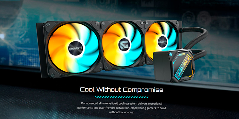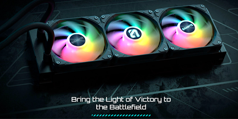Để thổi bay lượng nhiệt tích tụ, GIGABYTE đã trang bị cho bộ AIO này 3 chiếc quạt tản nhiệt kích thước 120mm hoạt động vô cùng hiệu quả. Các cánh quạt có khả năng tự động điều chỉnh tốc độ quay từ 500 đến 2200 RPM (+/-10%), cung cấp lưu lượng gió mạnh mẽ đạt 61.61 CFM. Bất chấp sức gió lớn, độ ồn của quạt vẫn được kiểm soát cực tốt, chỉ dao động ở mức 13.8 ~ 35.8 dBA. Nhờ đó, máy tính của bạn vừa được làm mát chuyên sâu, vừa duy trì được không gian yên tĩnh cần thiết để tập trung tối đa.