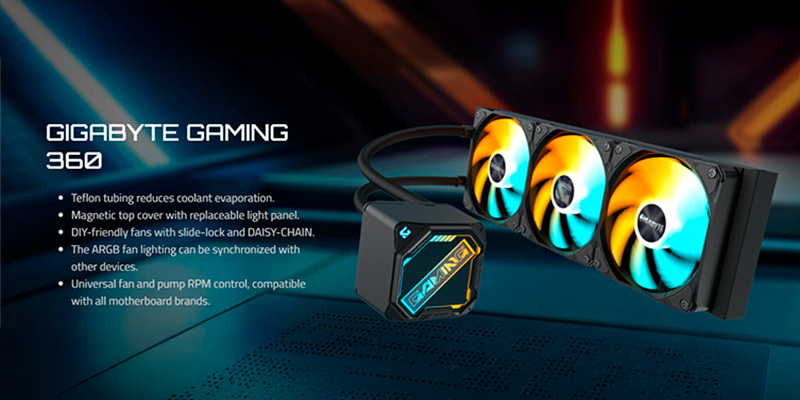 Tản nhiệt nước AIO GIGABYTE GAMING 360 ARGB mang đến giải pháp làm mát chất lượng cho những hệ thống PC hiệu năng cao. Sở hữu kích thước Radiator 360mm (chi tiết 403 x 120 x 35mm) được chế tác từ chất liệu Nhôm cao cấp, sản phẩm tối ưu hóa diện tích tản nhiệt để nhanh chóng xua tan luồng khí nóng. Kết hợp cùng bề mặt tiếp xúc CPU làm bằng Đồng nguyên chất, thiết bị đảm bảo khả năng truyền dẫn nhiệt cực kỳ hiệu quả, giữ cho bộ vi xử lý luôn hoạt động ở mức nhiệt độ lý tưởng ngay cả khi ép xung cường độ cao.