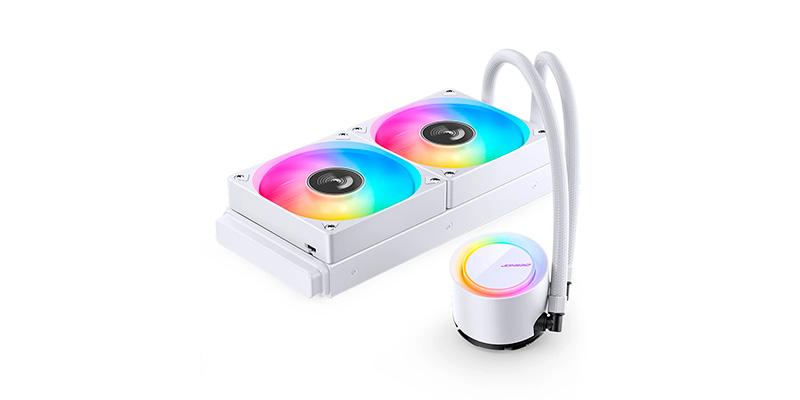 Tản nhiệt nước AIO Jonsbo TG-240 ARGB White sở hữu radiator 277mm x 120mm x 27mm bằng nhôm cao cấp, kết hợp 2 quạt 120mm mang đến khả năng tản nhiệt hiệu quả cho CPU từ tầm trung đến cao cấp. Nhờ lưu lượng gió đạt 29.22–66.19CFM mỗi quạt, hệ thống duy trì nhiệt độ ổn định ngay cả khi xử lý các tác vụ nặng như render, đồ họa hay gaming nhiều giờ liền. Với thiết kế bơm tối ưu và tốc độ quay 2400rpm (±10%), sản phẩm đảm bảo dòng chảy chất lỏng tuần hoàn liên tục, tăng hiệu quả làm mát tổng thể cho hệ thống.