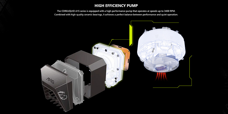 Bơm tích hợp quay ở tốc độ 3400 RPM ±10%, tiêu thụ điện năng chỉ khoảng 2.52W, và độ ồn cực thấp chỉ 20 dBA. Nhờ đó, hệ thống không chỉ làm mát hiệu quả mà còn duy trì sự yên tĩnh cần thiết cho người dùng chuyên nghiệp.