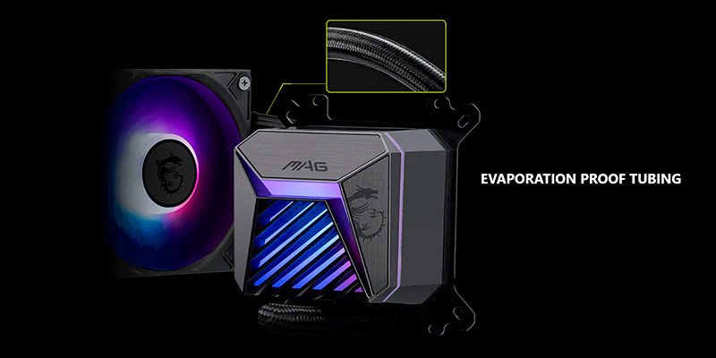 Tản nhiệt nước AIO MSI MAG CORELIQUID A15 360 mang đến hiệu suất làm mát vượt trội với thiết kế radiator kích thước 394 x 119.6 x 27.2 mm bằng nhôm nguyên khối. Block làm mát bằng đồng, kích thước 71.23 x 69.47 x 75.05 mm, đảm bảo tiếp xúc tối ưu với CPU, hỗ trợ tản nhiệt nhanh và hiệu quả ngay cả khi ép xung hoặc xử lý tác vụ nặng.