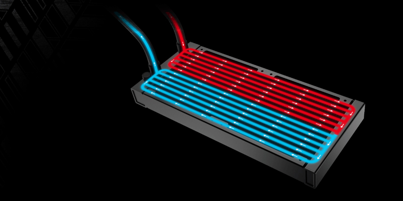 Nâng cao hiệu suất CPU nhờ tính năng làm mát bằng chất lỏng được điều khiển bởi Radiator gồm 12 đường dẫn giúp giải nhiệt nhanh chóng.