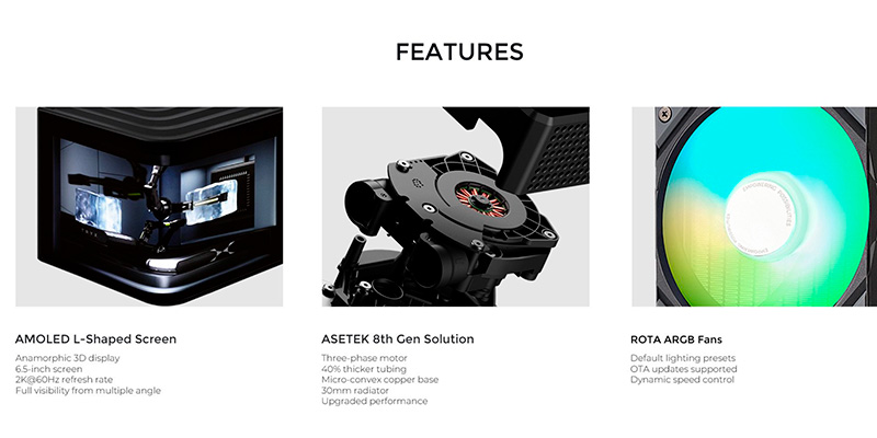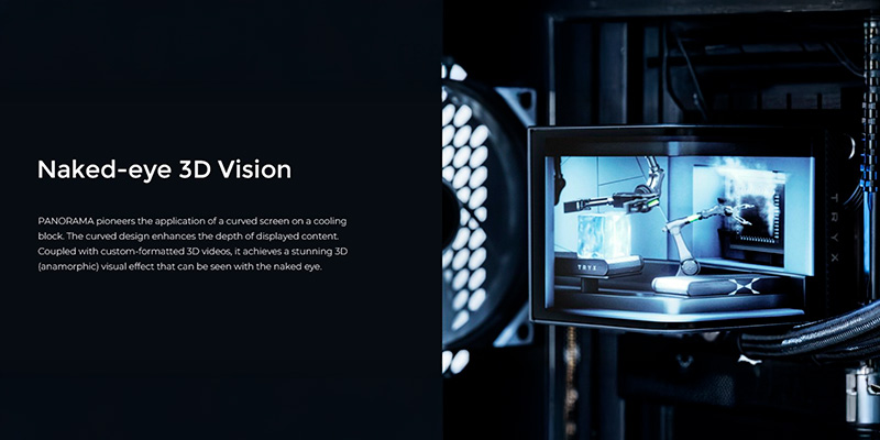 TRYX PANORAMA 240 ARGB L-shaped AMOLED Black là mẫu AIO mang đậm dấu ấn thiết kế khi trang bị màn hình AMOLED hình chữ L, kích thước 6.5 inch độ phân giải 2K 60Hz, mang lại góc hiển thị rộng 3D, trực quan và sống động. Màn hình hỗ trợ hiển thị nhiệt độ CPU, tốc độ quạt, hiệu ứng ảnh động, thời gian,... và có thể tùy biến nội dung hiển thị thông qua phần mềm TRYX. Chất lượng hiển thị của màn hình AMOLED cực kỳ rõ nét, màu sắc nổi bật, tăng thêm điểm nhấn mạnh mẽ cho bộ máy. Đây là thiết kế rất hiếm thấy trong các dòng AIO hiện nay, mang lại giá trị thẩm mỹ vượt trội cho game thủ và người dùng yêu thích phong cách build PC tinh tế.