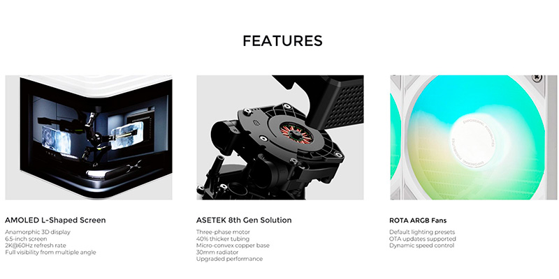 TRYX PANORAMA 240 ARGB L-shaped AMOLED White là mẫu AIO mang đậm dấu ấn thiết kế khi trang bị màn hình AMOLED hình chữ L, kích thước 6.5 inch độ phân giải 2K 60Hz, mang lại góc hiển thị rộng 3D, trực quan và sống động. Màn hình hỗ trợ hiển thị nhiệt độ CPU, tốc độ quạt, hiệu ứng ảnh động, thời gian,... và có thể tùy biến nội dung hiển thị thông qua phần mềm TRYX. Chất lượng hiển thị của màn hình AMOLED cực kỳ rõ nét, màu sắc nổi bật, tăng thêm điểm nhấn mạnh mẽ cho bộ máy. Đây là thiết kế rất hiếm thấy trong các dòng AIO hiện nay, mang lại giá trị thẩm mỹ vượt trội cho game thủ và người dùng yêu thích phong cách build PC tinh tế.