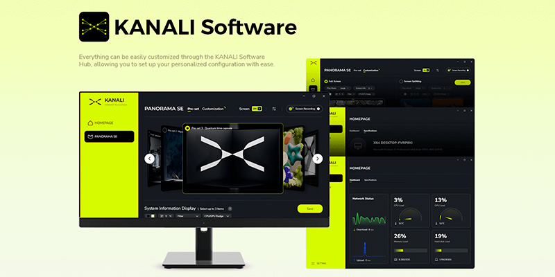 TRYX trang bị cho dòng Panorama SE 240 một module hiển thị cao cấp với cấu trúc Triple Layer Screen Technology, gồm kính cường lực chống trầy xước, lớp phủ chống chói (Anti-Glare) và lớp dán full-adhesion giúp giảm phản chiếu ánh sáng ngoài. Màn hình không chỉ hiển thị đẹp mà còn bền bỉ và rõ nét trong mọi điều kiện ánh sáng. Tất cả nội dung hiển thị được điều khiển thông qua phần mềm KANALI Software Hub, hỗ trợ chia đôi màn hình (split-screen), điều chỉnh động, ghi lại nội dung và nâng cấp firmware OTA. Đây là điểm cộng lớn cho các builder chuyên nghiệp muốn vừa hiển thị hệ thống, vừa tạo dấu ấn cá nhân trên dàn máy.