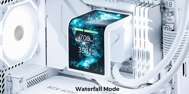 Tản nhiệt nước AIO TRYX PANORAMA SE 240 ARGB Rotatable AMOLED White L-P240L-AM2M-G0W là dòng AIO cao cấp được trang bị màn hình cong AMOLED kích thước 6.5 inch, độ phân giải 2K (2.2 triệu điểm ảnh), tần số 60Hz, độ sáng 400 nits, mật độ điểm ảnh 372 PPI và tương phản siêu cao 1.000.000:1. Màn hình có thể xoay linh hoạt theo module lắp đặt, hỗ trợ nhiều góc hiển thị khác nhau như mặt trước, bên trái, bên phải hoặc phía trên case. Hình ảnh hiển thị luôn sắc nét ở mọi góc nhìn, kết hợp hiệu ứng Anamorphic 3D không cần kính, đem lại trải nghiệm đột phá về thị giác cho các dàn máy hiện đại.