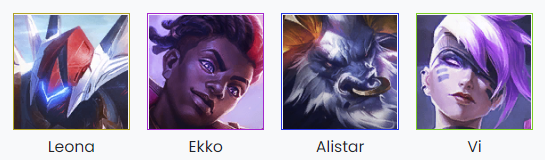 Hệ Aegis bao gồm tướng: Vi (2 vàng), Alistar (3 vàng), Ekko (4 vàng), Leona (5 vàng)