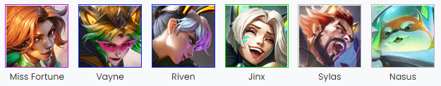Tộc Anima Squad bao gồm các tướng: Miss Fortune (4 vàng), Sylas (1 vàng), Jinx (2 vàng), Riven (3 vàng), Nasus (1 vàng), Vayne (3 vàng)