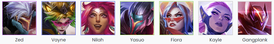Hệ Duelist bao gồm tướng: Fiora (1 vàng), Kayle (1 vàng), Yasuo (2 vàng), Gangplank (2 vàng), Vayne (3 vàng), Nilah (3 vàng), Zed (4 vàng)