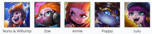 Tộc Gadgeteers trong DTCL bao gồm tướng: Lulu (1 vàng), Poppy (1 vàng), Annie (2 vàng), Zoe (3 vàng), Nunu & William (5 vàng)