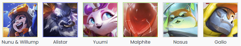 Hệ Mascot bao gồm tướng: Nasus (1 vàng), Galio (1 vàng), Malphite (2 vàng), Yuumi (2 vàng), Alistar (3 vàng), Nunu & William (5 vàng).