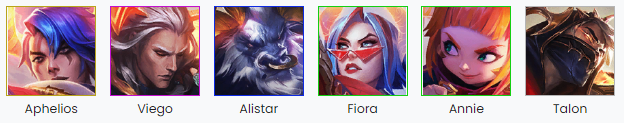 Hệ/tộc Ox Force trong DTCL bao gồm tướng: Talon (1 vàng), Annie (2 vàng), Fiora (2 vàng), Alistar (3 vàng), Viego (4 vàng), Aphelios (5 vàng)