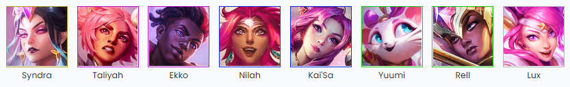 Hệ Heart bao gồm tướng: Lulu (1 vàng), Yuumi (2 vàng), Lee Sin (2 vàng), Sona (3 vàng), Soraka (4 vàng), Syndra (5 vàng)