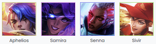 Hệ Sureshot bao gồm tướng: Sivir (2 vàng), Senna (3 vàng), Samira (4 vàng), Aphelios (5 vàng)