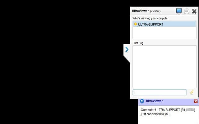 UltraViewer hỗ trợ cho người dùng cửa sổ chat nhanh