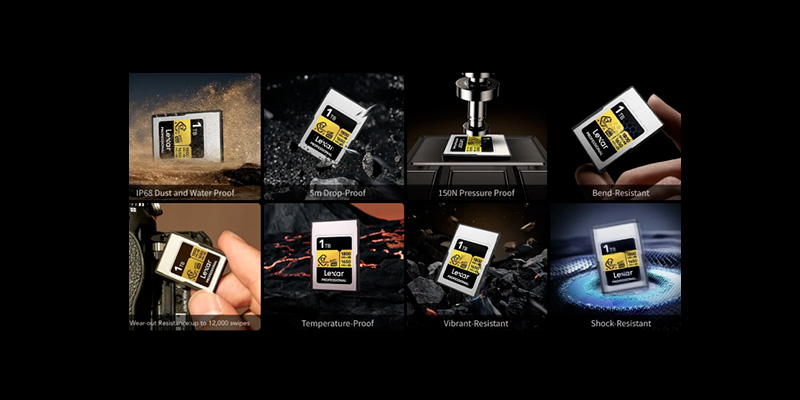 Thẻ nhớ CFexpress Lexar Professional 1TB Type A GOLD Series được thiết kế để chịu được các điều kiện khắc nghiệt, bao gồm chống nhiệt độ, chống rung, chống bụi và nước (IP68), chịu được va đập từ độ cao 5m, chống sốc và uốn cong, đảm bảo an toàn cho dữ liệu quan trọng của bạn.
