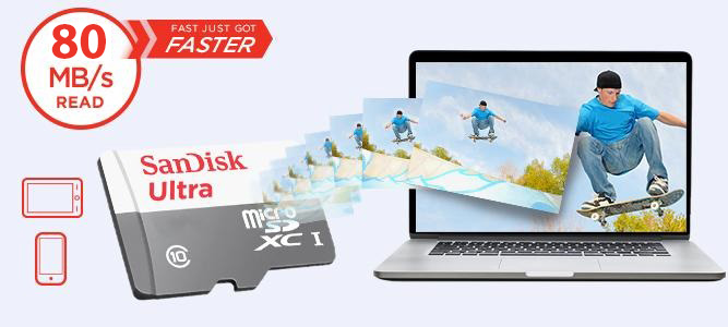 Thêm nhiều không gian, tiết kiệm thời gian Với tốc độ cực nhanh lên đến 80 MB/s, thẻ nhớ MicroSD Sandisk Ultra có thể nhanh chóng di chuyển tất cả hình ảnh và video của bạn từ điện thoại hoặc máy tính bảng của bạn để máy tính. |