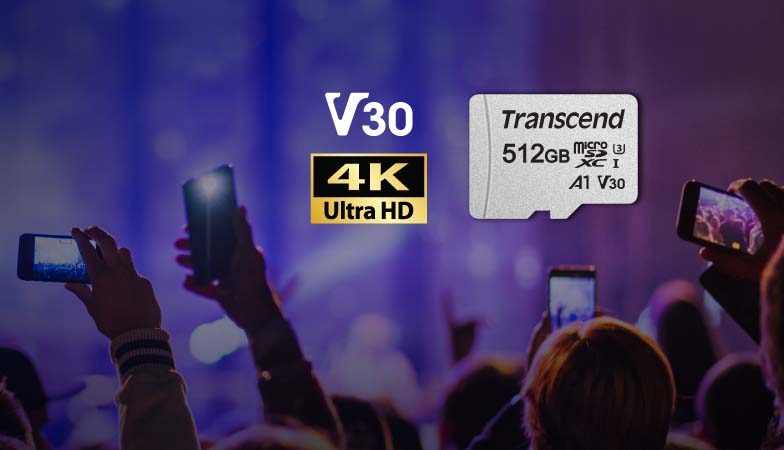 Chất lượng nâng cao Thẻ nhớ MicroSD Transcend 300S đáp ứng cả tiêu chuẩn UHS Speed Class 3 (U3) và UHS Video Speed Class 30 (V30) để quay video 4K Ultra HD, với tốc độ đọc/ ghi lên đến 100MB/s và 85MB/s. *U3 và V3 áp dụng cho thẻ dung lượng 128GB-512GB |