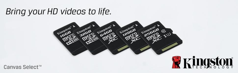 Nhiều gói dung lượng cho bạn lựa chọn Để đáp ứng nhu cầu cụ thể của bạn, thẻ nhớ Kingston MicroSD Canvas Select Class 10 UHS-I có dung lượng từ 16GB đến 256GB. |