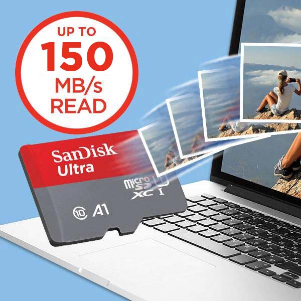 Tốc độ cực nhanh lên đến 150MB/s Với tốc độ đọc có thể lên đến 150MB/s, thẻ nhớ MicroSD SanDisk Ultra A1 cho phép bạn chuyển hình ảnh độ phân giải cao và video Full HD sang máy tính của bạn mà không cần phải chờ đợi lâu. |