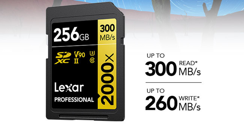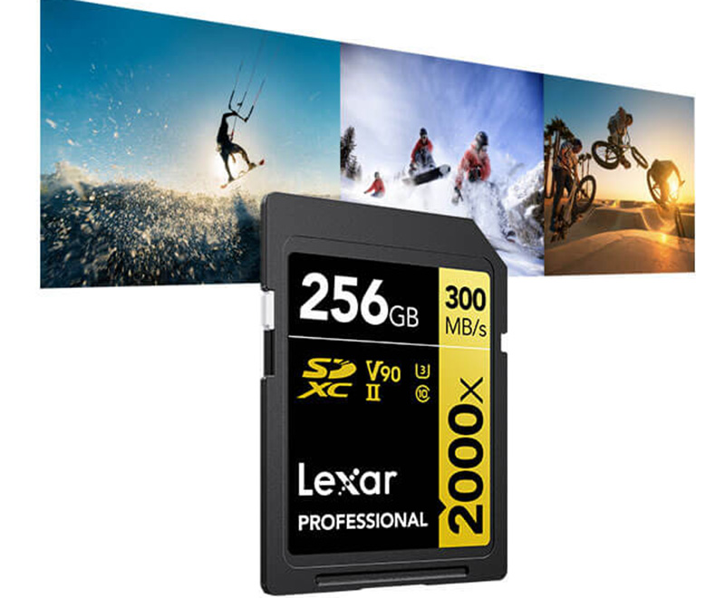 Thẻ nhớ SDXC Lexar Professional 2000x UHS-II U3 300MB/s GOLD Series với tốc độ đọc, ghi cực cao lên tới 300 MB/s đọc, tốc độ ghi lên tới 260 MB/s cho phép bạn quay video chất lượng rạp chiếu phim mà không bị rớt khung hình.