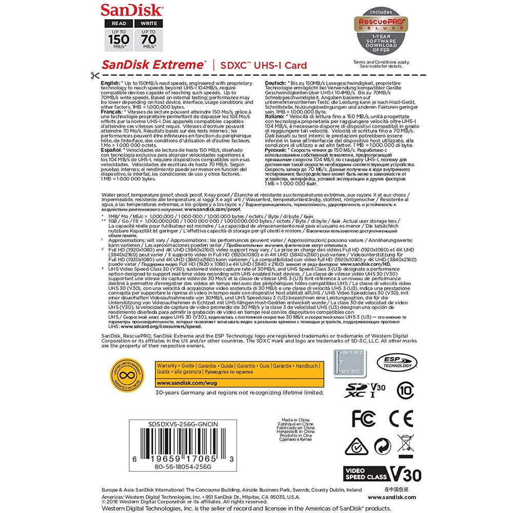 Thẻ nhớ SDXC SanDisk Extreme U3 V30 1000x 256GB 150MB/s SDSDXV5-256G-GNCIN