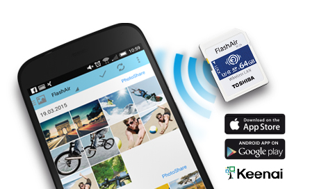 Giao diện người dùng thân thiện Ứng dụng FlashAir™ có sẵn trên Appstore và CHPlay download miễn phí sẽ giúp bạn xem nội dung trên thẻ SD hoặc chia sẻ dữ liệu giữa các thiết bị. Ngoài ra, thẻ nhớ SD Toshiba Wifi FlashAir™ W-04 U3 hỗ trợ hoạt động với dịch vụ lưu trữ và quản lý ảnh "Keenai" của Ricoh Innovations Corporation. "Keenai" cho phép tự động truyền dữ liệu hình ảnh từ thẻ FlashAir™ và cho phép người dùng tự động đồng bộ dữ liệu ảnh và phim vào dịch vụ đám mây. Bạn có thể tham khảo chi tiết về Keenai tại: www.keenai.com - Download the iOS app here. - Download the Android app here. - Download the Workstation (Windows and Mac OS) Software Tool here. |